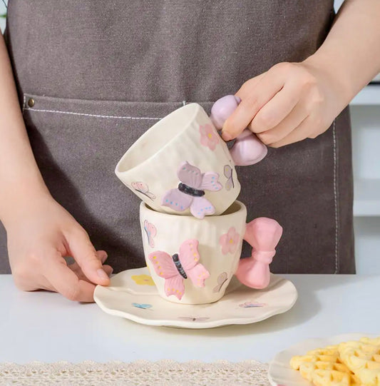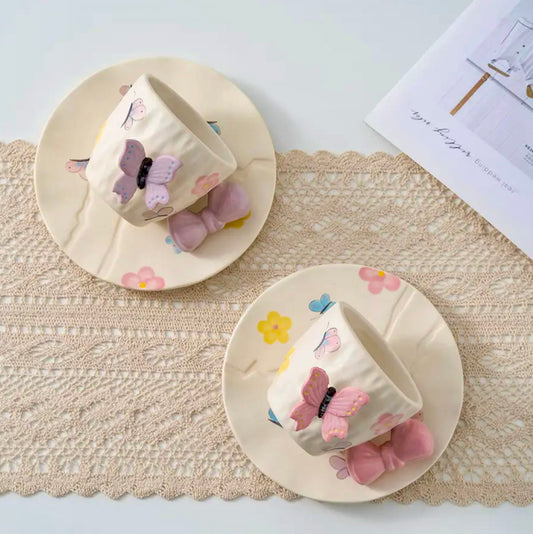 'Pink Butterfly' Ceramic Cup & Saucer, Set Of 1
