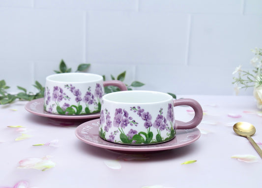 'Purple Meadows' Ceramic Cup & Saucer, Set Of 1