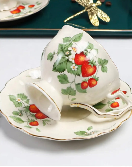 'Strawberry Blossom' Ceramic Cup & Saucer, Set Of 2
