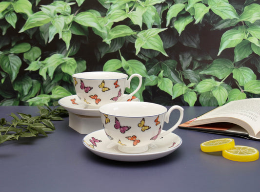 'Purple Butterfly' Ceramic Cup & Saucer Set Of 1