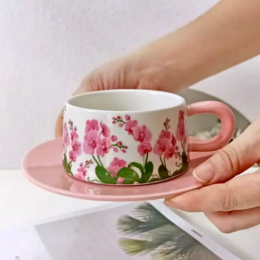 'Pink Meadows' Ceramic Cup & Saucer, Set Of 1