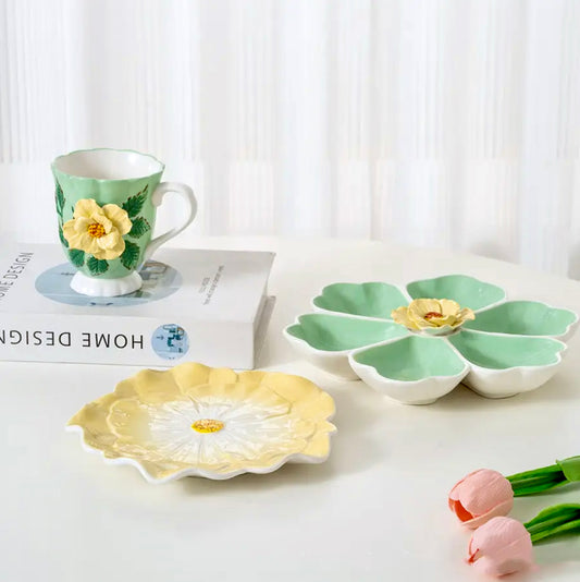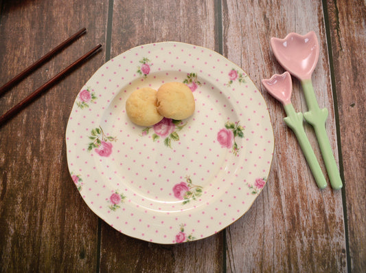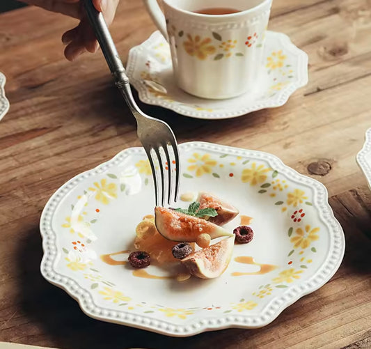 'Mini Roses' Ceramic Dessert Plate - Yellow