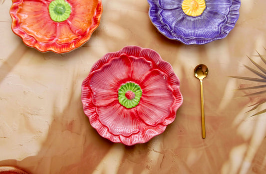 'Mini Roses' Ceramic Dessert Plate - Purple
