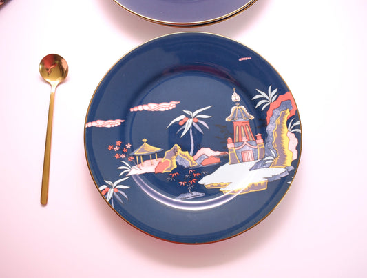 'Ivy' Navy Blue Landscape' Dessert Plate