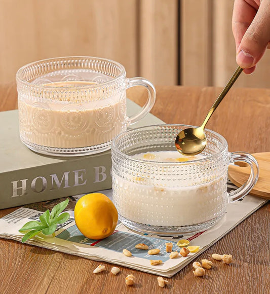 'Coral' Glass Cups - Set of 2, Transparent Rim