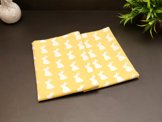 'Bunny' Yellow Printed Kitchen Towels, Set of 2