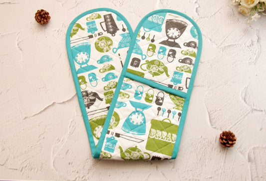 'Aqua' Oven Mittens Set of 2