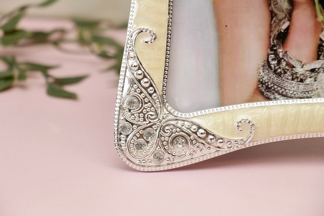 Introducing the 'Willow' Photo Frame, with beautiful embellishments on the frame. Display your cherished memories in opulent style with this luxurious frame, evoking the elegance and sophistication of the finest jewellery. Elevate any space with this exquisite piece, a must-have for any connoisseur of refined beauty. Preserve your precious moments in style with our elegant Photo Frame. Display your cherished photographs in style and create a timeless piece of art in your home. Add a touch of sophistication to your decor and showcase your memories in a tasteful, exclusive way. This photo frame comes in three different sizes that you can choose from.